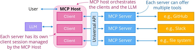Model Context Protocol (MCP) is an open standard for giving language models structured access to tools, data, and prewritten prompts. Instead of relying on ad-hoc prompt engineering or custom retrieval pipelines, tools and data sources are exposed to models through MCP servers in a standardized format. Developers can plug in existing tools (both cloud e.g., GitHub, Slack and local e.g., company database) rather than reinvent integrations each time. This approach promotes reusability across models and projects. An MCP client (usually inside an AI app or agent—an MCP Host) is used to query these servers to retrieve information or invoke actions.